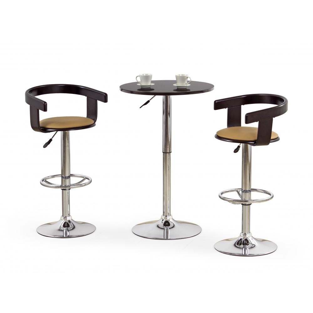 Pořiďte si moderní barový set 2+1 Evald 2. Opřete se do pohodlné židličky, u které si nastavíte její výšku stejně, jako u stolu jeho výšku pomocí páky.