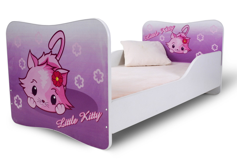 Kvalitní jednolůžková postel s dětským motivem kočičky na předním i zadním čele. S touto barevnou postelí vytvoříte v dětském pokoji příjemné místo pro vašeho potomka. V případě zájmu o sestavení celého dětského pokoje, lze zakoupit další komponenty se stejným motivem.