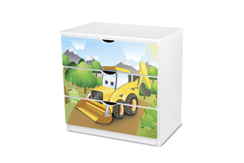 Máte doma malého šikulu, který ostatním dětem na pískovišti vylepšuje bábovičky? Pořiďte mu do pokojíčku veselou dětskou komodu Bagr se 3 šuplíky.