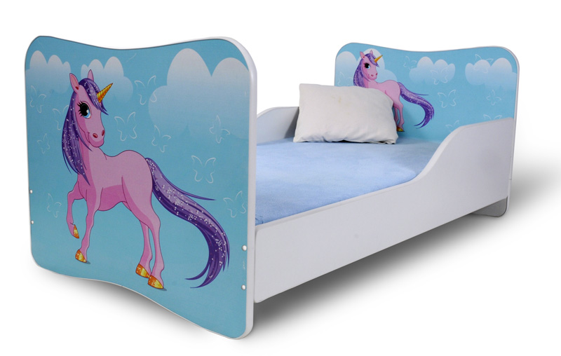Dětská postel pro holčičky Koník 1 je pohodlným i roztomilým doplňkem pokojíku. Krom komfortního spánku si vaše slečna oblíbí veselý potisk s jednorožcem.