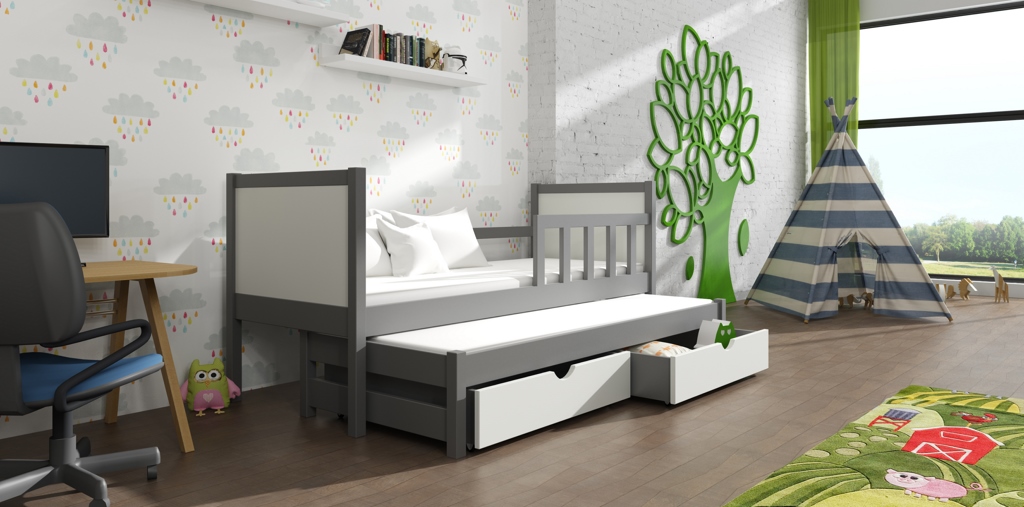 Máte dvě malé dítka a potřebujete pro ně pohodlné spaní? Dětská postel Evita 30 je to pravé. Vytáhněte přistýlku a uložte oba špunty vedle sebe.