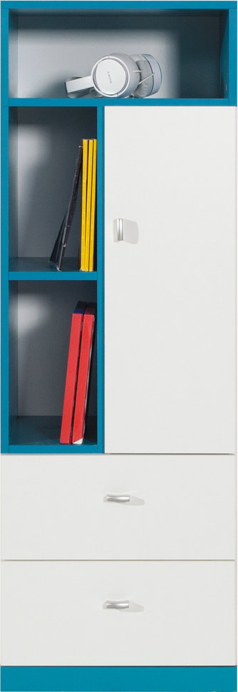 Převládající bílá barva, doplněná dle vašeho výběru tyrkysovým nebo žlutým odstínem, umožňuje kombinování takřka s jakýmkoliv moderním dětským nábytkem.