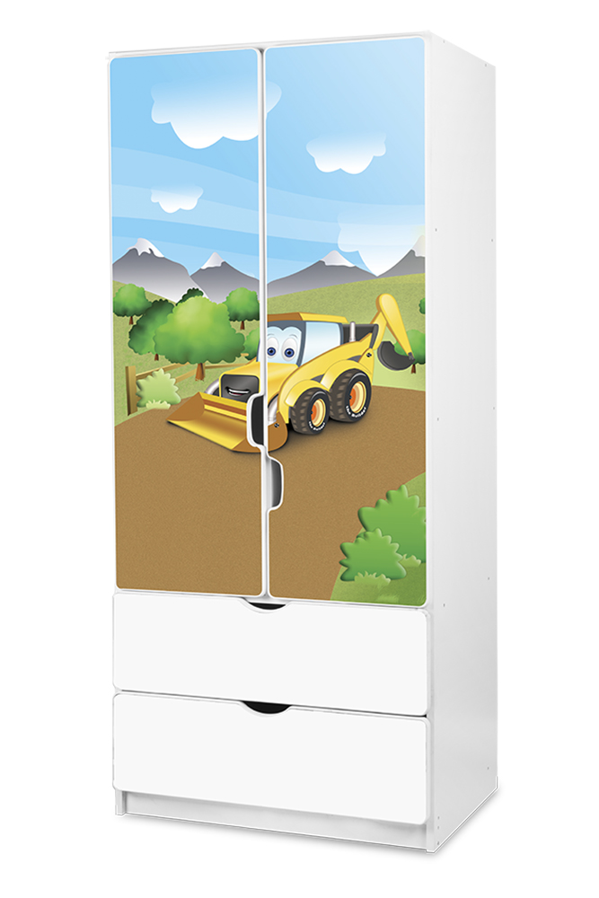 Vás syn překopává celé pískoviště? Pořiďte mu do pokojíčku dětskou šatní skříň Bagr. Pověste mu oblečení na šatní tyč a využijte i 2 šuplíky a 3 police.