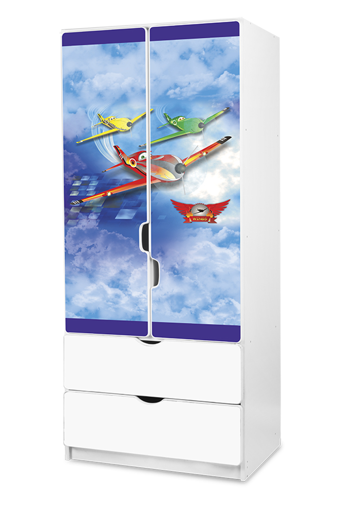 Máte doma malého pilota? Udělejte mu radost a pořiďte mu dětskou šatní skříň Letadla. Využijte k uložení oblečení 2 šuplíky, 3 police a jednu šatní tyč.