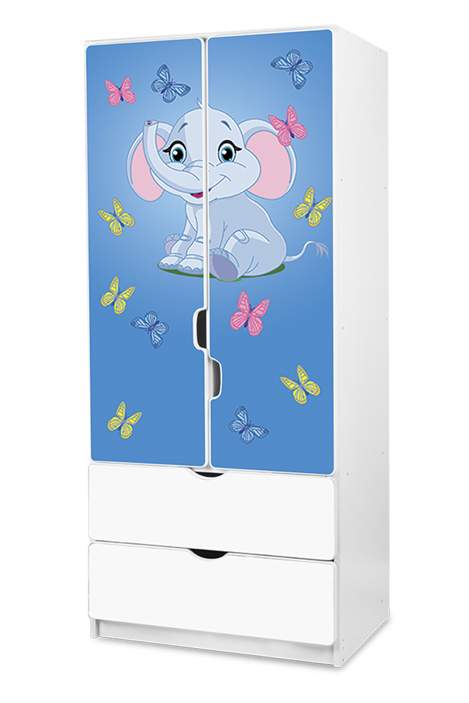 Pořiďte do dětského pokoje dětskou šatní skříň Sloník. Váš prcek se bude radovat z veselé ilustrace a vy využijete 2 šuplíky, 3 police a jednu šatní tyč.