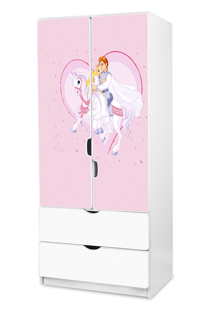 Máte doma malou slečnu která má ráda růžové odstíny? Kupte ji do pokojíčku dětskou šatní skříň Pohádka. Využijte 2 šuplíky, 3 police a šatní tyč
