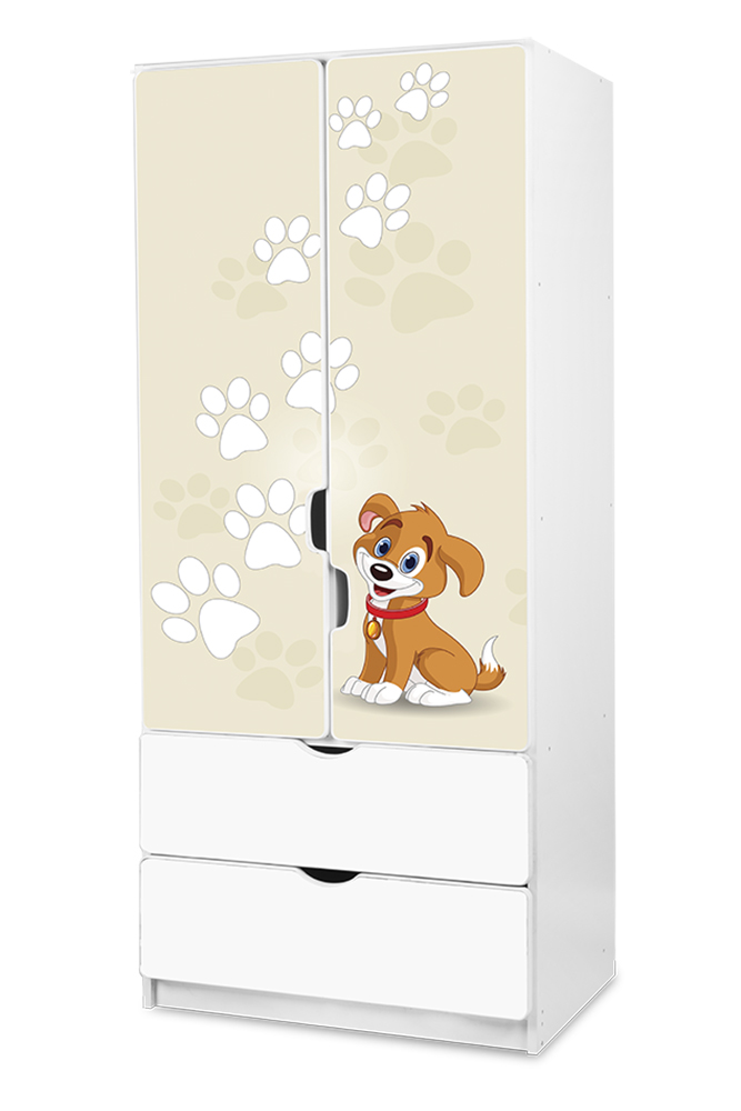 Máte doma malého prcka, který se rád mazlí s vašim pejskem? Pořiďte mu do pokojíčku dětskou šatní skříň Psí tlapky. Využijte k uložení nejrůznějšího oblečení i sportovních potřeb 2 šuplíky, 3 police a šatní tyč.