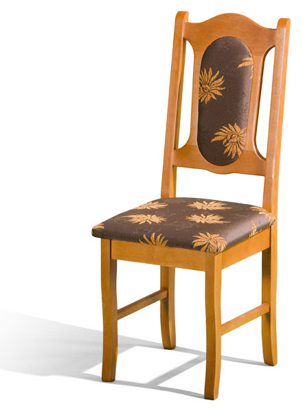 Klasická jídelní židle s polstrováním bude ideálním prvkem do každé kuchyně. Zajímavě řešené opěradlo propůjčí celé židli originální vzhled. Polstrování zajistí příjemné posezení i po delší době. Čalounění si lze vybrat ze dvou kategorií potahů a to klasické látky nebo ekokůže. Obě varianty mají své klady a zápory, záleží pouze na preferencích zákazníka. Konstrukce židle je dřevěná a to konkrétně masiv olše, mořit jej lze několika druhy barev a tónů. Pro vyšší ochranu je při konečné úpravě použit bezbarvý, nezávadný lak. Židle je již zkompletovaná, není třeba ji montovat. K dokoupení máme v nabídce i jídelní stůl ve stejných barevných provedeních.