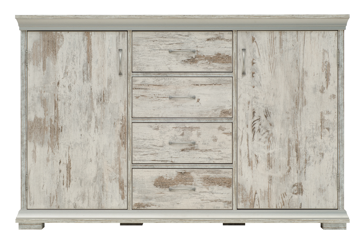 Potřebujete pěkné místo na uložení oblečení i čehokoliv jiného? Rustikální kombinovaná komoda Modesto 2 je pro vás správnou volbou. Do šuplíků a skříněk dělených policí uložíte ručníky, utěrky i sadu svátečních příborů.