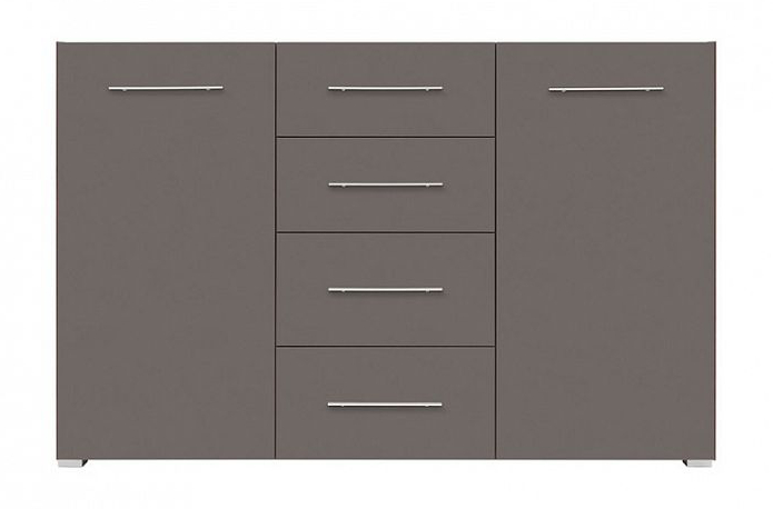 Ať už potřebujete v obývacím pokoji uložit deky a dokumenty nebo v jídelně příbory a nádobí, skvělým spojencem vám bude komoda Grey 1 se svým různorodým úložným prostorem. Dle libosti v ní zaplníte 4 praktické zásuvky s tichým dojezdem a 4 police, které jsou rozdělené do 2 bočních skříněk.