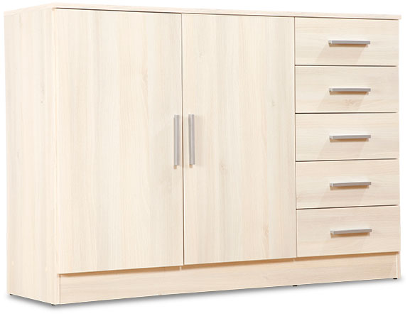 Využijte úložný prostor kombinované komody Manzula. Dejte si do šuplíků šperky, cennosti, dokumenty nebo jen třeba spodní prádlo. Za dvířky objevíte vloženou polici, kterou využijte pro komínky oblečení.