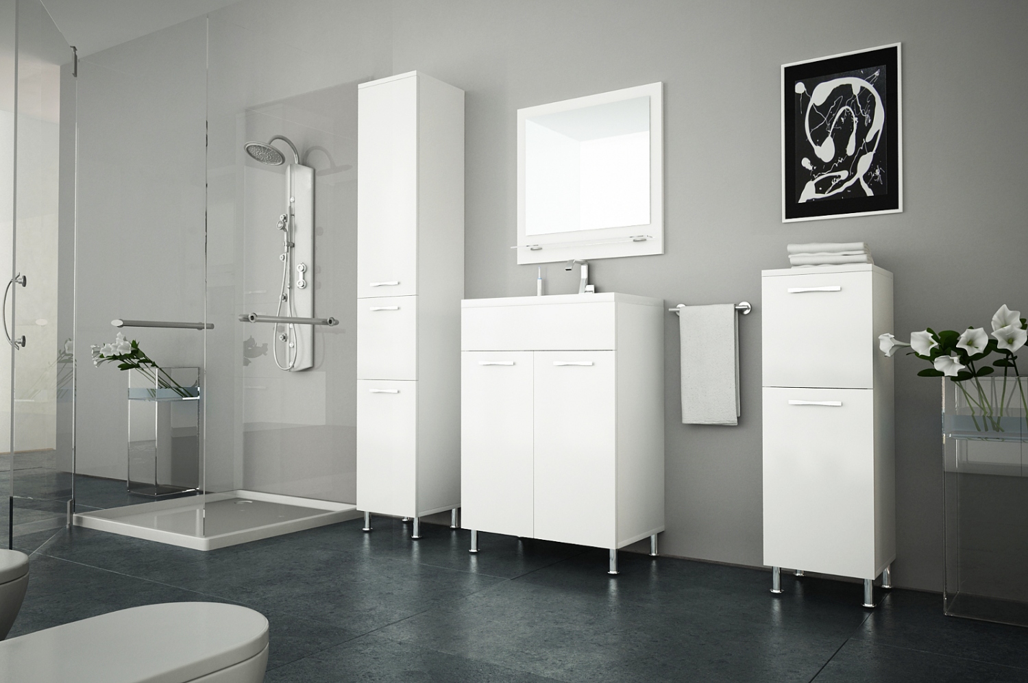 Úhledně vše po ruce vám zní jako nemožný sen? Ale kdepak. S koupelnovou sestavou Valencia toho dosáhnete snadno. Objednejte si rovnou umyvadlo i světlo