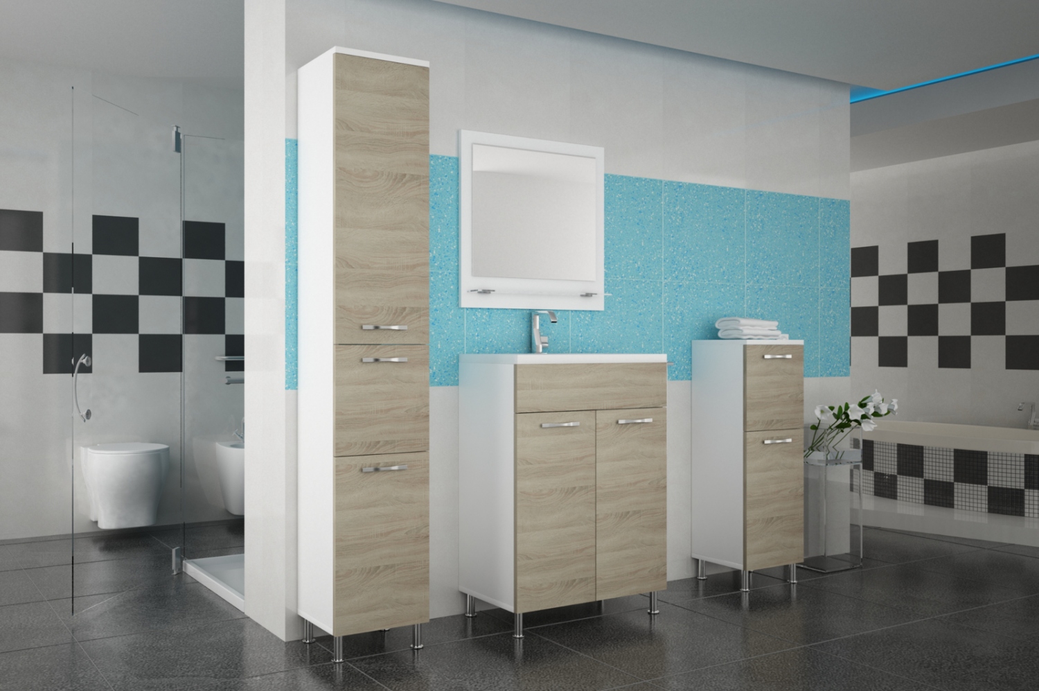 Nedělejte si už hlavu, kam zase spadla zubní nit nebo kde se u všech ďasů válel ten hřeben. Pořiďte si koupelnovou sestavu Valencia a mějte své hygienické pomůcky pod kontrolou v jedné z mnoha přihrádek. Pořiďte si komplet objednáním umyvadla i osvětlení navíc.