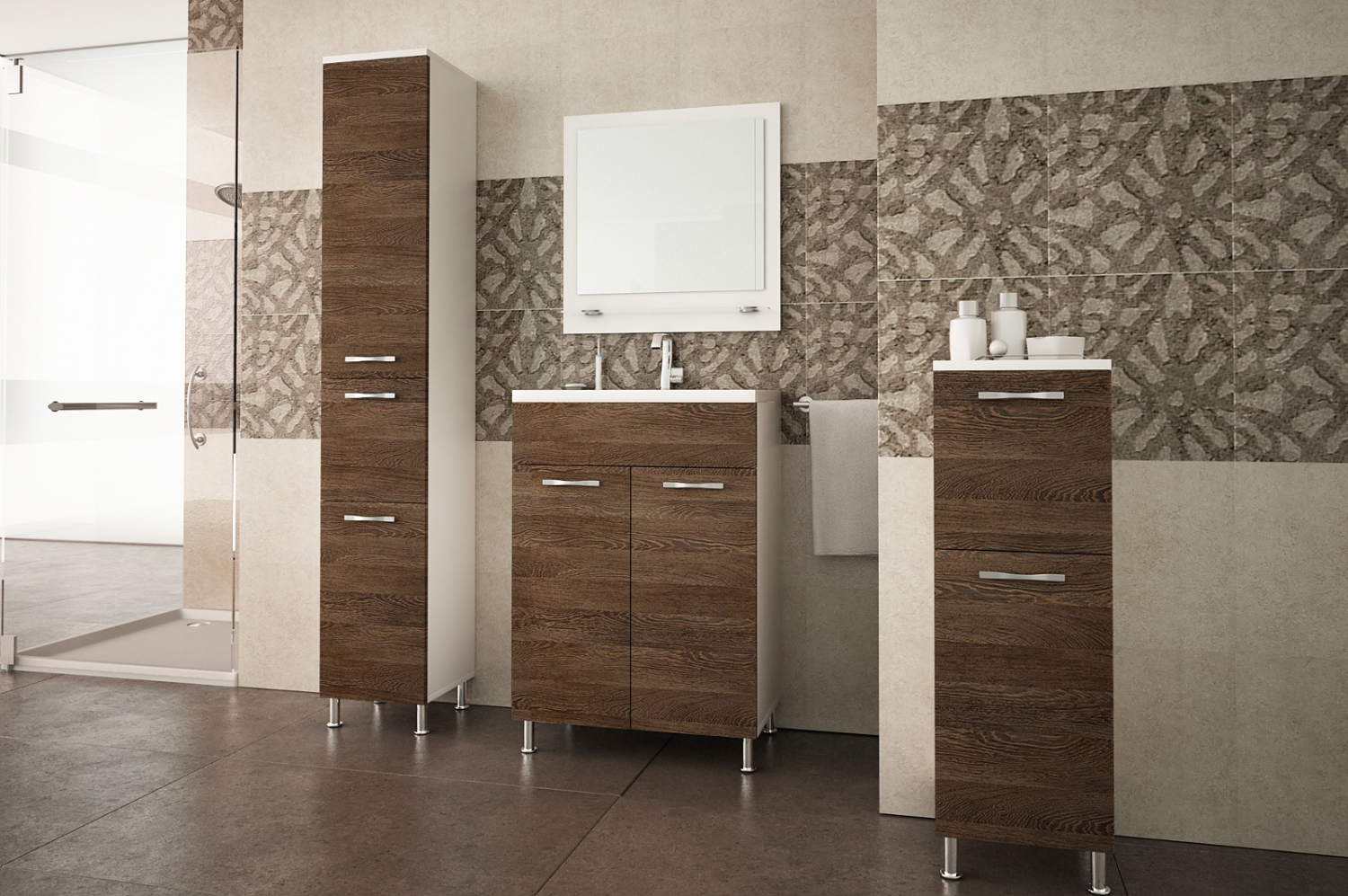 Nač ztrácet drahocenný čas hledáním přípravků v nepřehledné skříňce? Pořiďte si koupelnovou sestavu Valencia a mějte vše úhledně poskládané v přihrádkách.