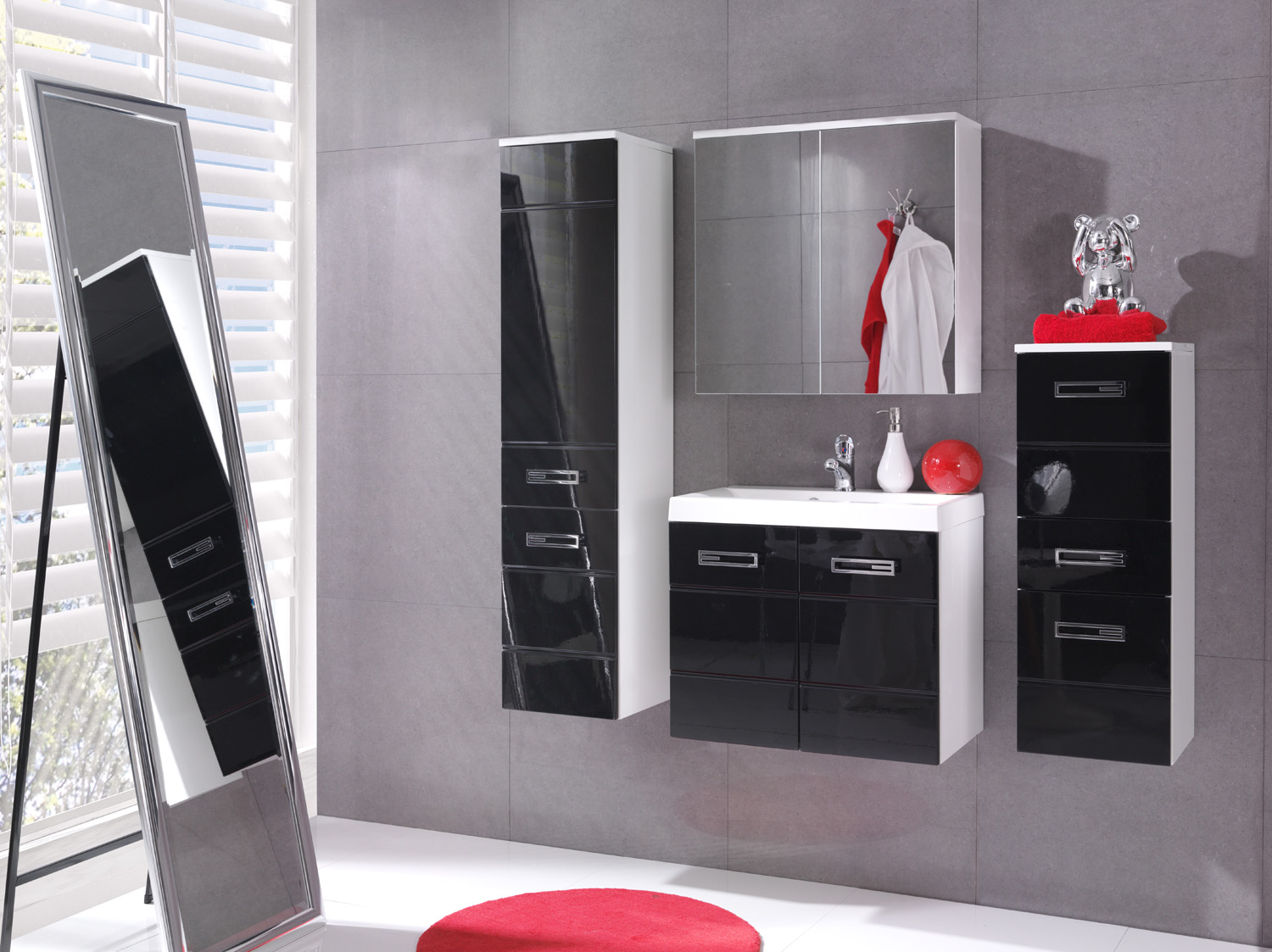 Černobílý nábytek je stále velmi oblíbený jde o moderní a originální kombinaci, která vždy ihned zaujme. Skvěle pak vypadá i v koupelně, kde oživí malý a opomíjený interiér. Pokud i vy patříte mezi příznivce nestárnoucí černobílé variace, pak neváhejte a vybavte si svou koupelnu koupelnovým nábytkem Demario. Korpus nábytku je bílý a přední části jsou v černém lesku.