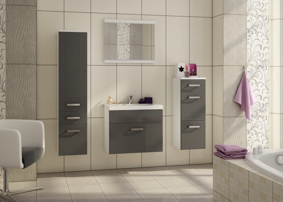 Sestava se skládá ze 3 různorodých skříněk a jednoduchého velkého zrcadla. Všechny kusy sestavy jsou vyrobeny z kvalitního lamina, u kterého především v koupelně oceníte vysokou odolnost vůči vlhkosti. Nábytek je laděn do klasické bílé barvy, která je doplněna šedým leskem. Skříňky jsou navíc závěsné, což usnadní úklid pod nábytkem a uchrání jej před neustálým kontaktem s vlhkou podlahou.