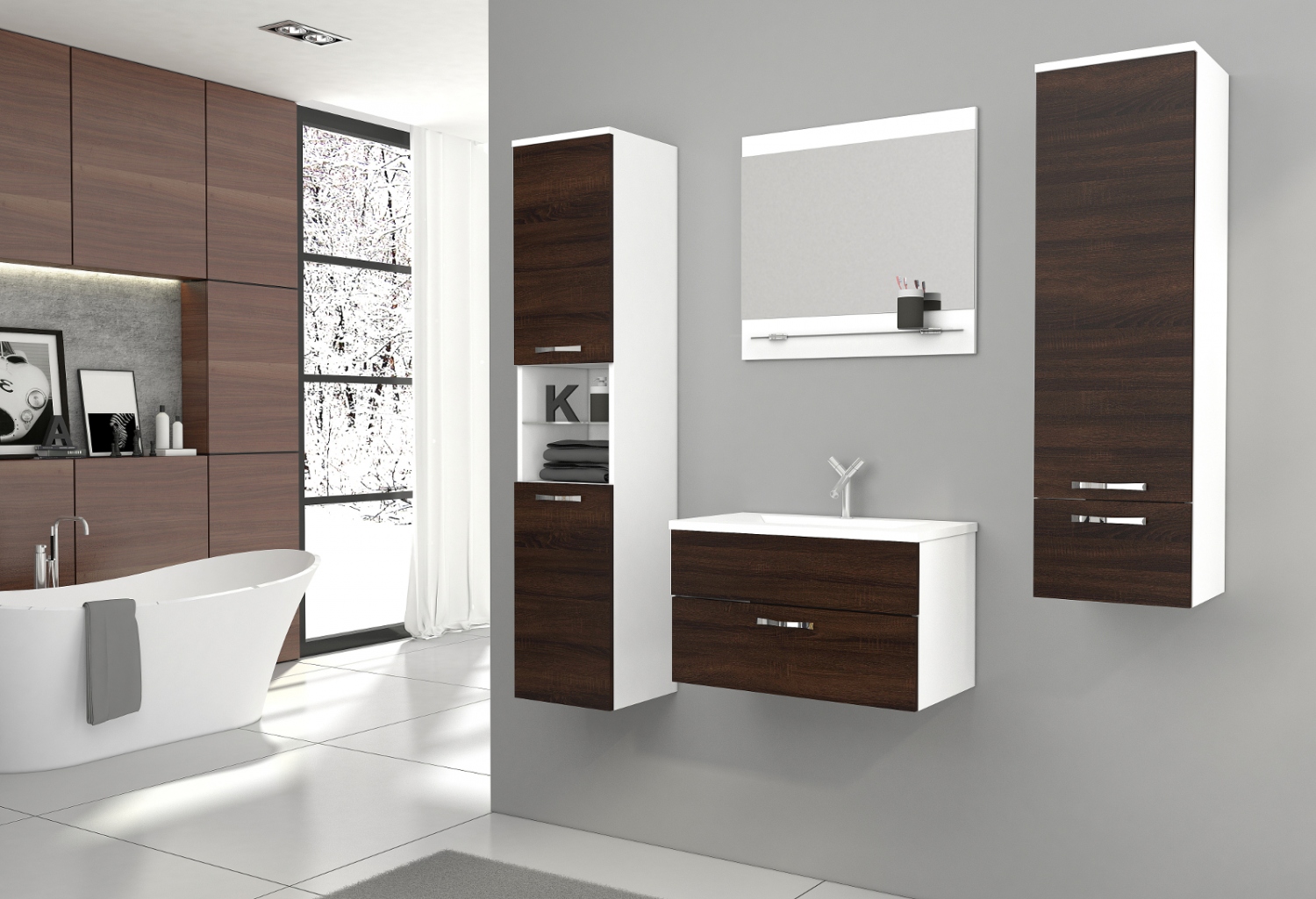 Vybrali jste si variantu s umyvadlem? Sestavu vám dodáme bez vyobrazené vodovodní baterie. Protože neznáme přesný typ zdiva ve vaší domácnosti, necháme výběr spojovacího materiálu k uchycení nábytku na stěnu na vás (v balení jej tedy nenajdete).