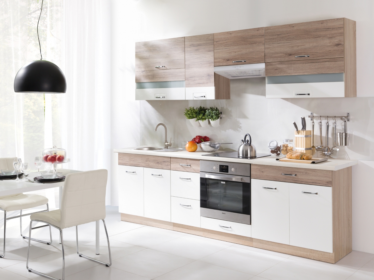 Součástí kuchyňské linky není vyobrazený kuchyňský dřez.