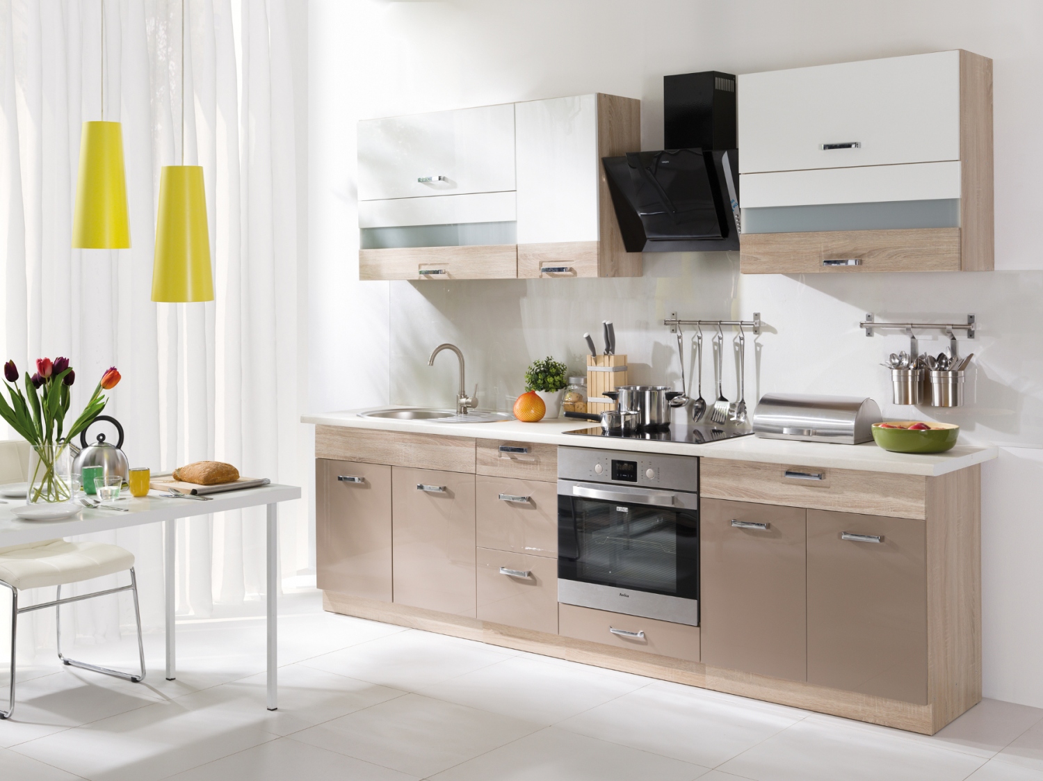 barevné provedení: dub sonoma + bílý lesk + cappuccino lesk + travertin