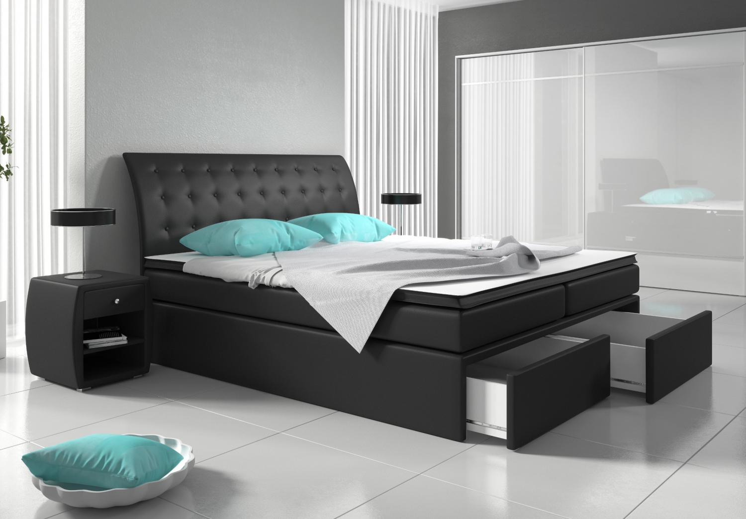 Udělejte si útulnou a velice pohodlnou ložnici. Kupte si manželskou kontinentální postel Rednila. Vyberte si verzi úložného prostoru i rozměr, který vám vyhovuje.