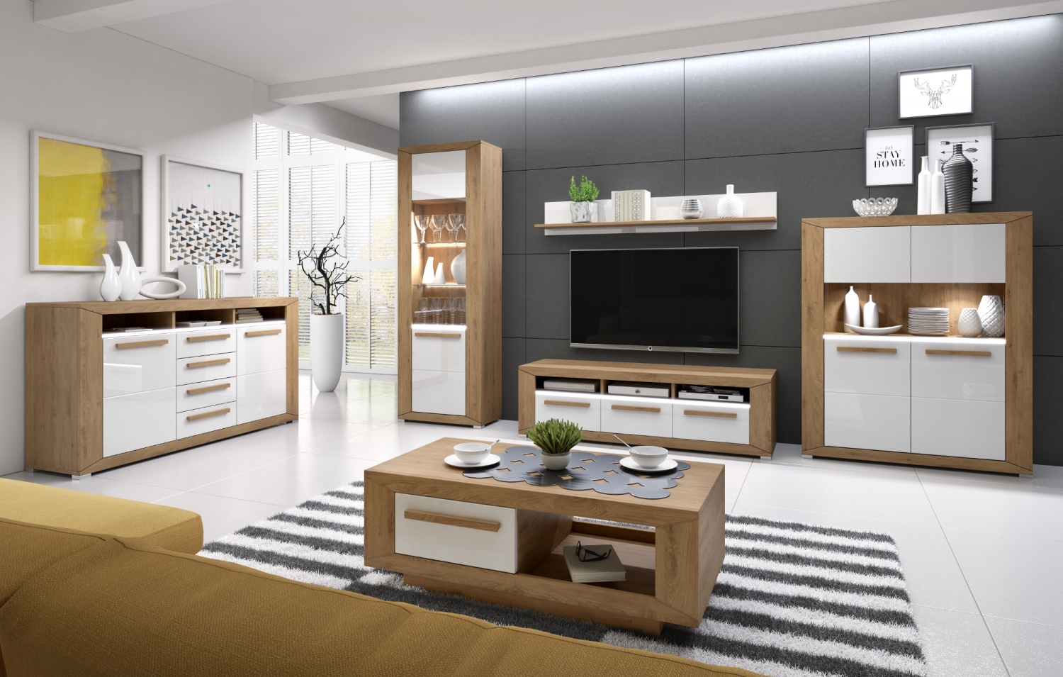 Přáli byste si moderní a útulný obývák? Seznamte se s obývací sestavou Waltaro 1. Využijete různorodý úložný prostor včetně konferenčního a televizního stolku. Některé kousky jsou vybaveny osvětlovacími lištami, které budou večer příjemně zářit.