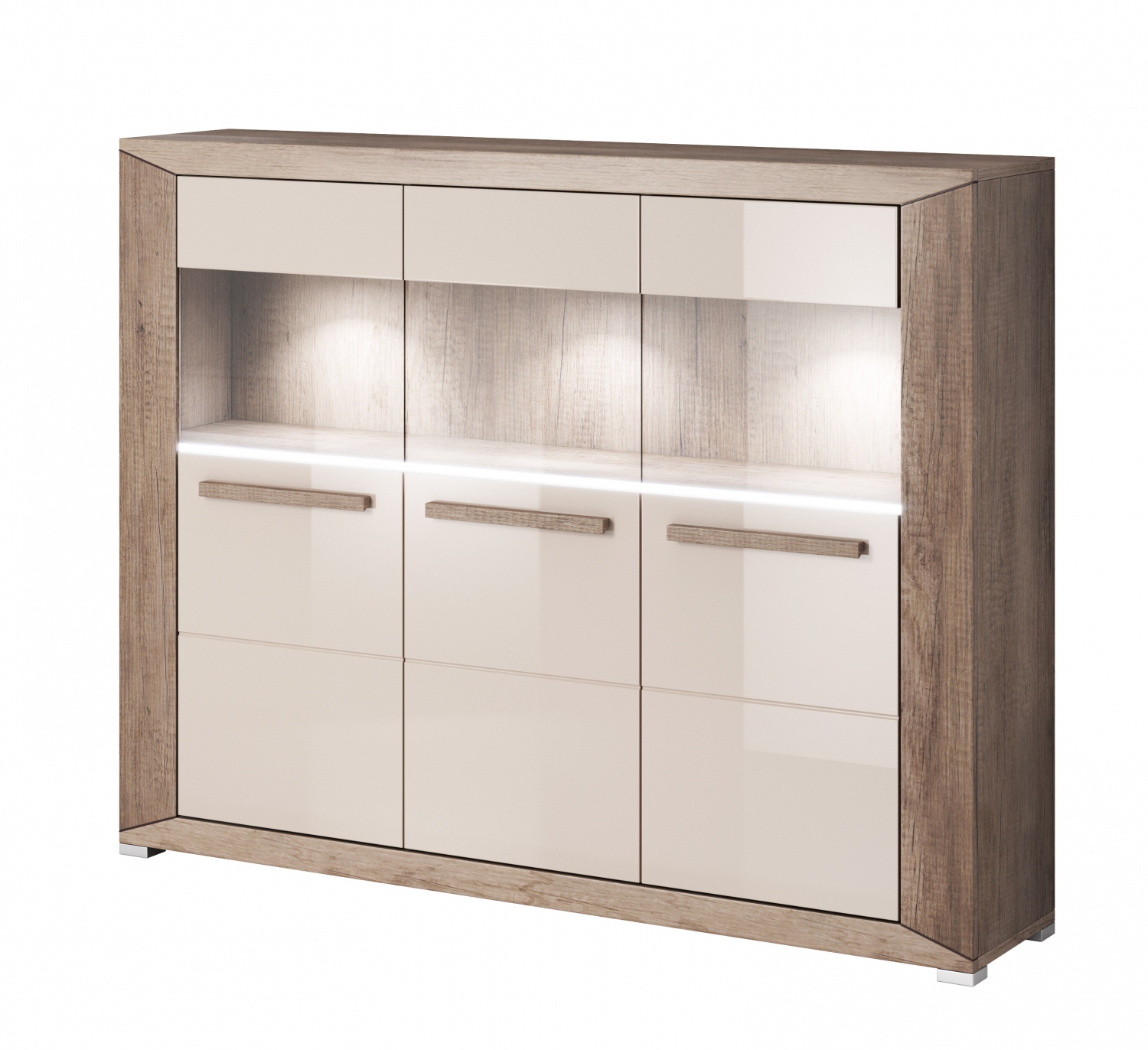 Pokud chcete v obýváku nejen ukládat, ale i vystavovat, oblíbíte si prosklenou komodu Waltaro 4. Do prosklených částí vystavíte trofeje a suvenýry z cesty a do zavřených přihrádek schováte deky a dokumenty. Osvětlovací lišta vám navíc zútulní interiér.