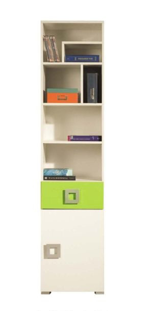Neví vaše dítě kam s učením, knížkami a ostatními věci? Moderní regál se v dětském či studentském pokoji rozhodně neztratí. Regál je rozdělen na více částí – otevřené přihrádky, zásuvku i skříňku s jednou vloženou policí.