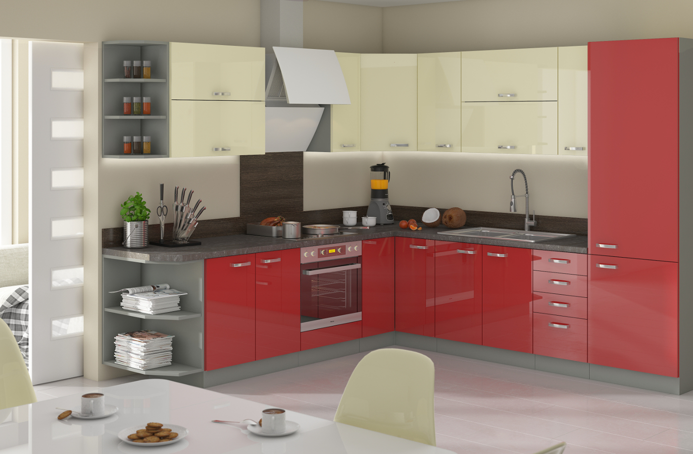 Vařte jako hvězda některé z televizních show. Pořiďte si moderní rohovou kuchyňskou linku Skarlet 1 a dejte si do spousty přihrádek nejrůznější suroviny a další šéfkuchařovo náčiní.