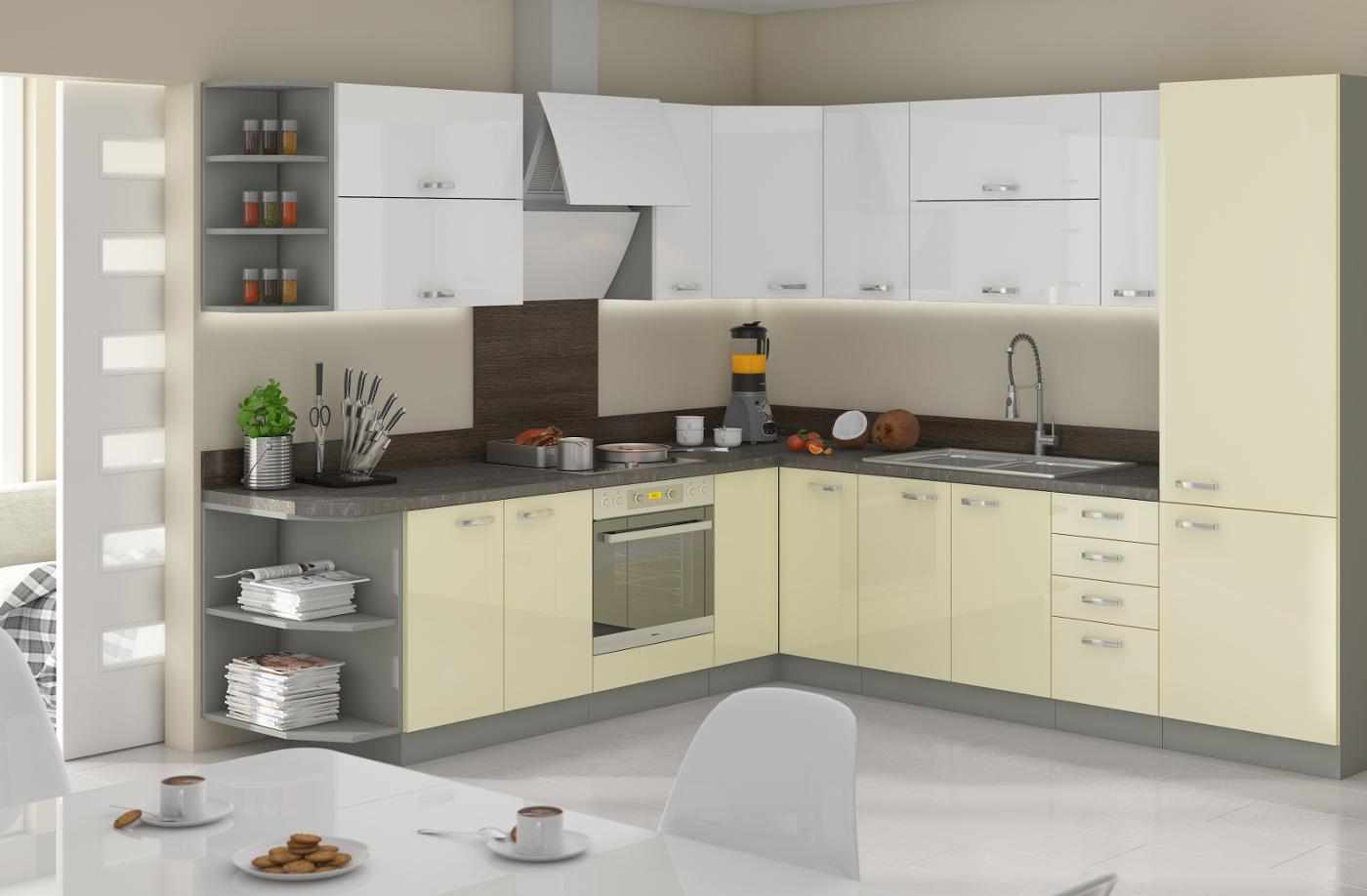 Vařte jako král. Zahoďte kuchařky a experimentujte. Rohová kuchyňská linka Timotea 1 vám dá spoustu prostoru pro zkoušení nových receptů a postupů.