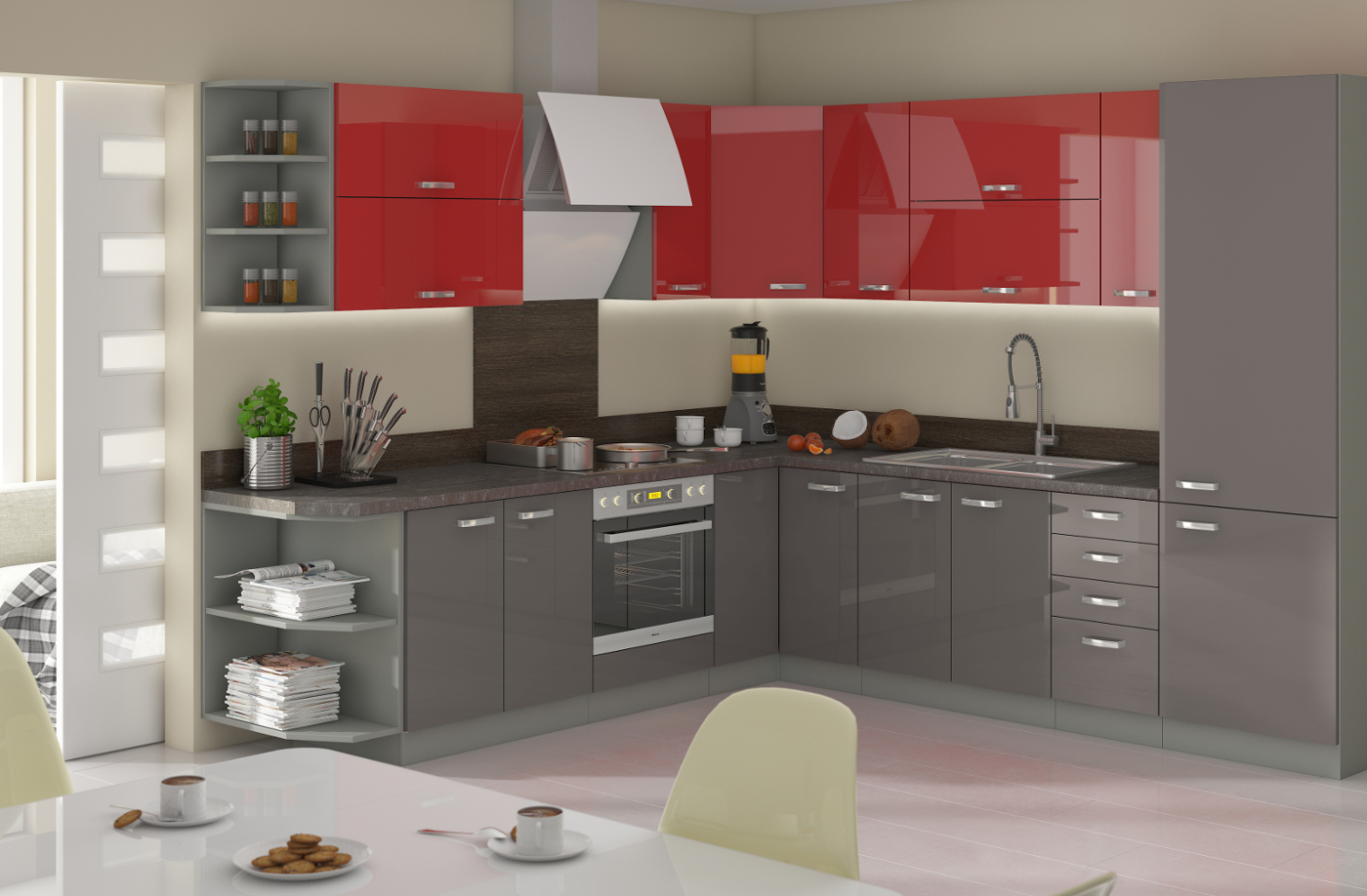 Vařit na moderní rohové kuchyňské lince Valenta 1 pro vás bude legrace. Díky spoustě úložného prostoru budete mít vše až směšně po ruce.