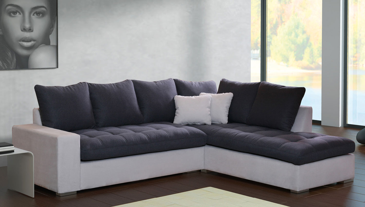 Rohová sedací souprava Bernadet se vyznačuje nadčasovým hranatým tvarem, který ji společně s efektně prošitou sedací plochou propůjčuje nadýchaný vzhled. Zadní opěrná část je pokryta velkými polštáři a sedačka je posazena na pevných plastových nožkách. Vnitřek je vyztužen pěnou společně s vlnitými pružinami. Na čalounění byla použita elegantní ekokůže a potahová látka. Variantu sedací soupravy si můžete vybrat buď z levé nebo pravé orientace rohu, díky níž se sedačka přizpůsobí vašim prostorovým potřebám.