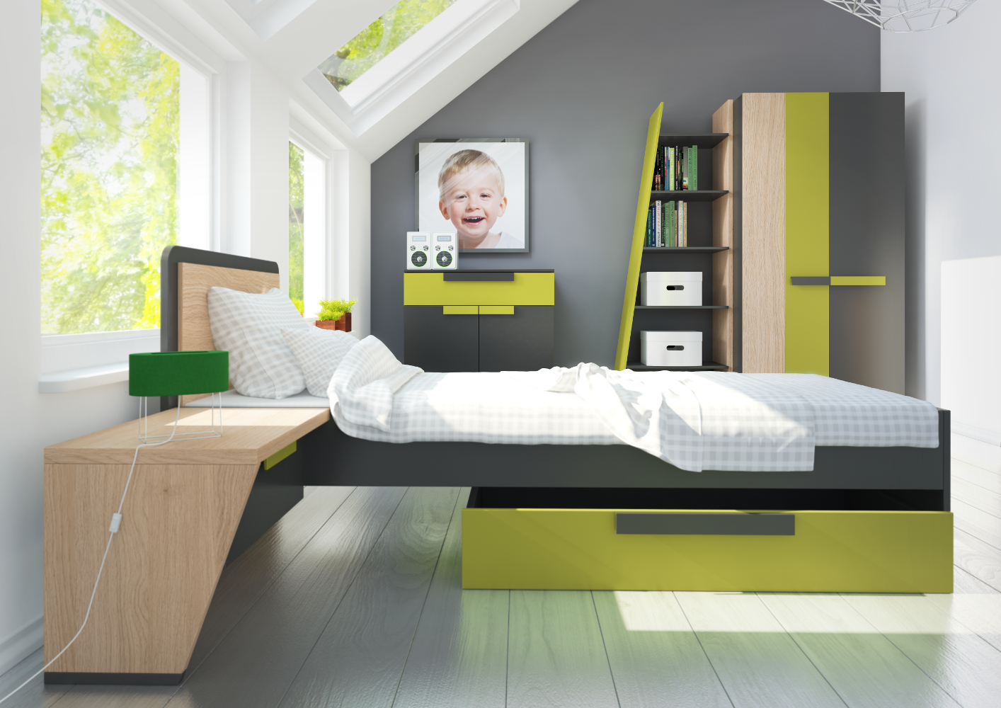 barevné provedení: dub nagano + grafit + zelená