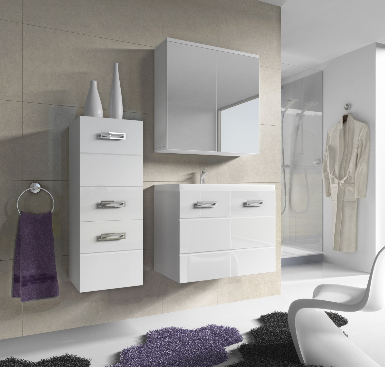 Vybavte svou koupelnu nábytkem, který nikdy nezestárne. Přesně taková je moderní koupelnová sestava Demario. Nevíte si rady s hromadami ručníků a spoustou parfémů? Vše své místo snadno nalezne v jedné ze závěsných skříněk tohoto kompletu.