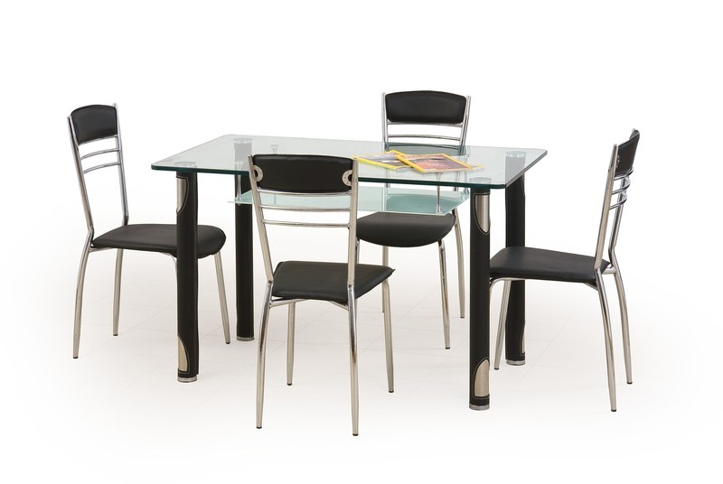 Vychutnejte si rodinné chvíle nebo návštěvy přátel u skleněného jídelního stolu Marcos 2. Kombinace elegantních černých noh s prvky leštěné oceli a čiré skleněné desky vám skvěle padne do většiny místností ve vaší domácnosti. Dejte si stůl i na větší prosklenou terasu či balkón. Povrch vždy snadno očistíte pouhým otřením.