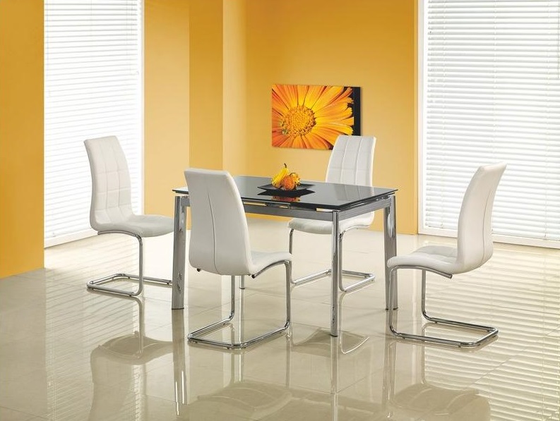 Pořiďte si do své domácnosti rozkládací skleněný stůl Torgio 2. Tmavá skleněná deska s čirými okraji posazená na chromovaných nohách vám zútulní jídelnu.