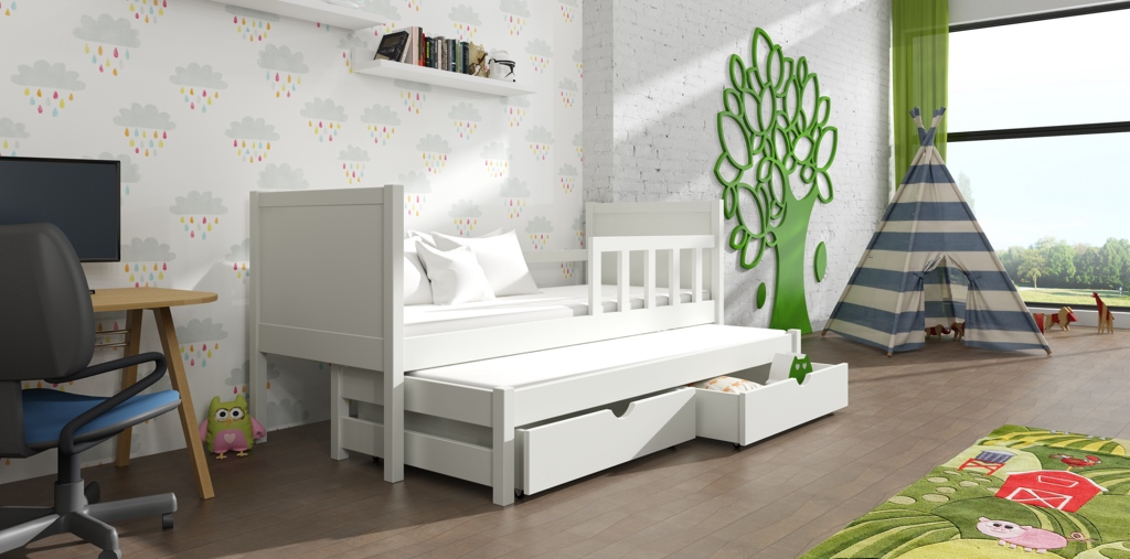 Kde ustlat oběma rostoucím sourozencům nebo kamarádovi na návštěvě? Využijte dětskou postel s přistýlkou Evita 22, uložíte do ní pohodlně dva malé nezbedy.