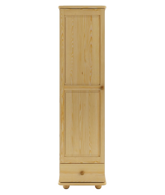 Jednodveřová šatní skříň Jorid z masivu borovice je vhodná do předsíně nebo na chatu. Uvnitř se nachází šatní tyč doplněná spodním úložným šuplíkem.